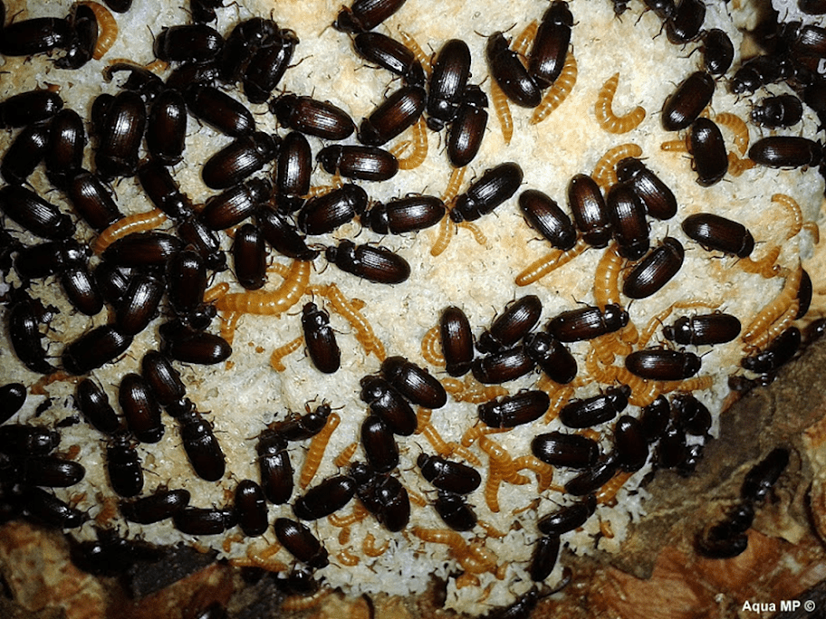 Gusano de la harina (Tenebrio Molitor): pese a su nombre, y a que en la naturaleza comen madera podrida principalmente, estos insectos se alimentan de todo de todo lo que se les eche. Es por esto que se suelen usar como alternativa a los derméstidos para limpiar huesos de animales. Suelen ser muy usados para alimentar reptiles y anfibios, pero se debe tener mucho cuidado, ya que contienen mucha grasa y proteína. Por tanto, se deben ofrecer muy de vez en cuando