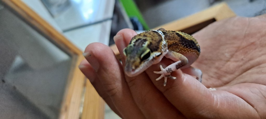 Uno de ellos, fue el de los geckos. Pese a que sólo tenemos una especie (gecko leopardo) me sirvió para constatar que su nombre procede de una onomatopeya (es decir, un nombre que procede del sonido que hacen algunas especies). Esta, en concreto, chilla cuando se la coge