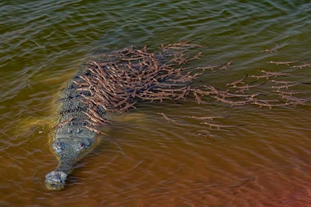 -volviendo al tema de los huevos, se trata, obviamente, del único crocodiliano que no toma a sus crías en la boca. En vez de eso, la hembra y el macho permanecen junto a sus crías; ninguna otra hembra de crocodiliano permite esto
