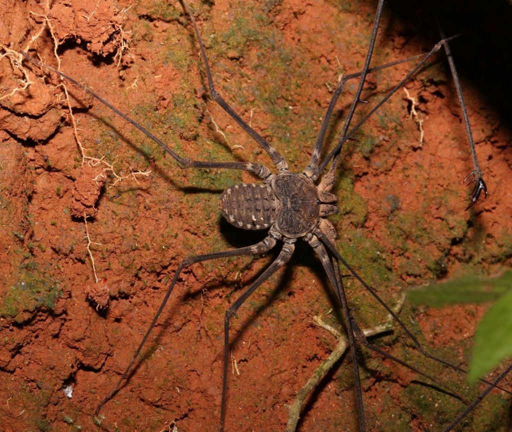 Descripción: arácnido de la familia de los amblipigios con 4 centímetros de cefalotórax, siendo las patas extremadamente largas y delgadas (cada una puede medir unos 12 centímetros). Tiene dos apéndices en forma de antenas que usan para detectar a sus presas, y dos pedipalpos modificados en forma de garras para atrapar a sus presas y para defenderse.