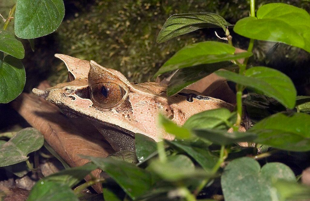 Nombre: rana hoja seca o rana cornuda malaya.