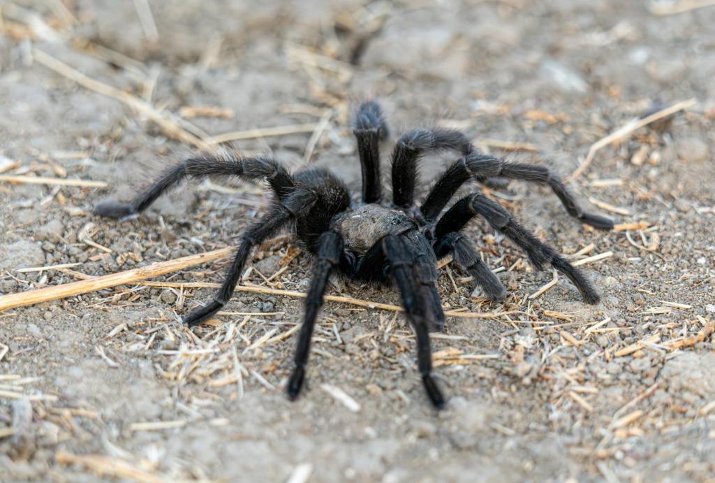 Descripción: araña de tamaño moderado, que puede alcanzar unos 16 centímetros de largo, con cuerpo negro y macizo. Cefalotórax muy desarrollado.